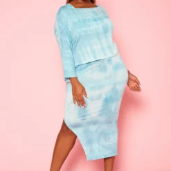 Plus Size Tie Dye Sweatshirt & Midi Dress Set