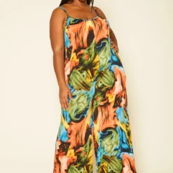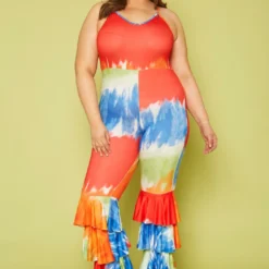 Plus Size Tie Dye Tiered Flare Jumpsuit