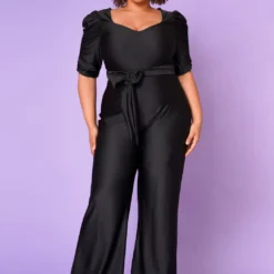 Plus Size Sweetheart Neck Satin Jumpsuit