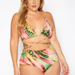 Plus Size Pink Sand Beach Three Piece Bikini Set
