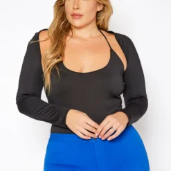 Plus Size Bolero Long Sleeve Shrug Bodysuit Set