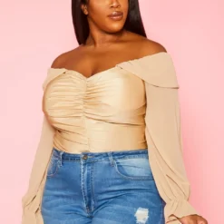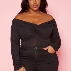 Plus Size Off Shoulder Long Sleeve Bodysuit