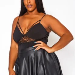 Asoph Plus Size Rosey Lace Contrast Cami Bodysuit