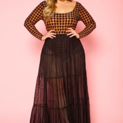 Plus Size Houndstooth Plaid Bodysuit & Tulle Skirt Set
