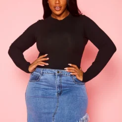 Plus Size Form Fitting Long Sleeve Bodysuit