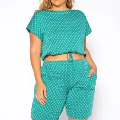Asoph Plus Size Ribbed Two Piece Crop Top Set