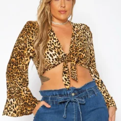 Plus Size Multi Print Crop Top & Flare Pants Set