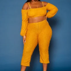 Plus Size Fuzzy Knit Crop Top & Capri Pants Set