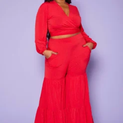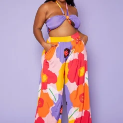 Plus Size Floral Wrap Halter Top & Palazzo Pants Set