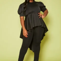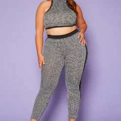 Plus Size Mock Neck Crop Top & Abstract Legging Set
