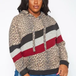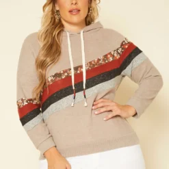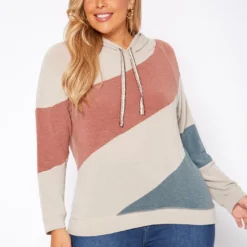 Asoph Plus Size Soft Hooded Color Splice Sweater