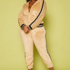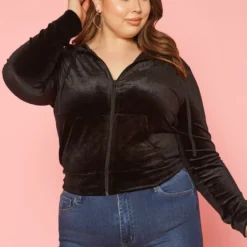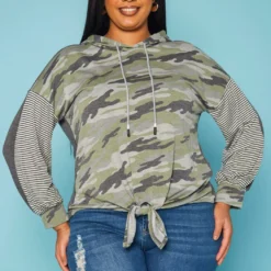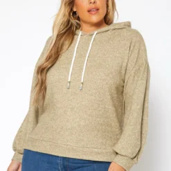 Plus Size Ribbed Knit Hooded Sweater & Skirt Set