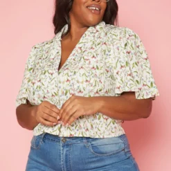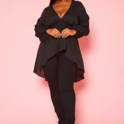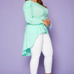 Plus Size High-Low Ruched Puffed Sleeves Top
