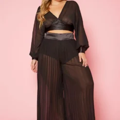 Plus Size Pleated Dolman Sleeve Top & Palazzo Pants Set