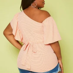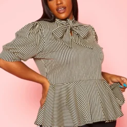 Plus Size Puff Shoulder Sleeve Peplum Blouse
