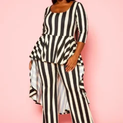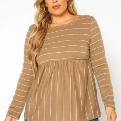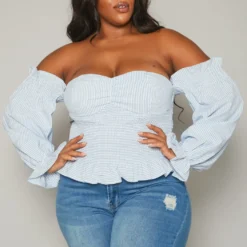 Plus Size Stripe Print Off Shoulder Smocked Top
