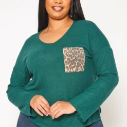 Plus Size Snakeskin Pocket Hem Long Sleeve Shirt