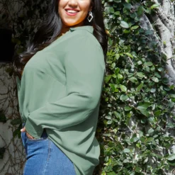 Pleione Plus Size Women’s V-Neck Front Placket Long Sleeve Blouse