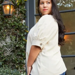 Pleione Plus Size Puff Shoulder Button Down Blouse