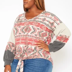 Plus Size Asymmetric Cold Shoulder Long Sleeve Top