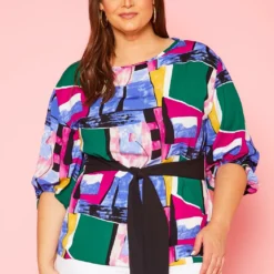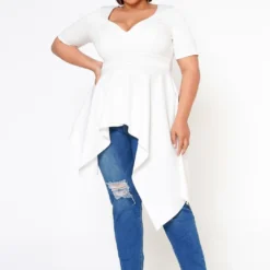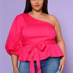 Plus Size Asymmetric One Sleeve Peplum Blouse