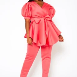 Plus Size Asymmetric Flare Hem Top & Pants Set