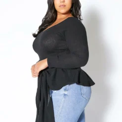 Asoph Plus Size Tie Hem Ribbed Sweater