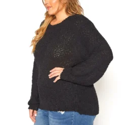 Asoph Plus Size Waffle Knit Open Back Sweater