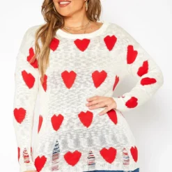 Asoph Plus Size Sweet Hearts Print Knit Sweater