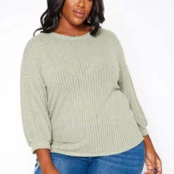 Asoph Plus Size Ribbed Knit Puffy Long Sleeve Top
