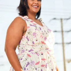 Pleione Plus Size V-Neck Peplum Tank Floral Blouse