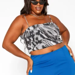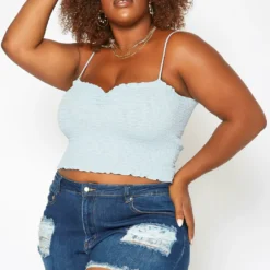 Asoph Plus Size Smocked Scrunch Detail Cam Top