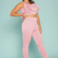 Asoph Plus Size Ruffle Crop Top & Pants Set