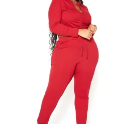 Asoph Plus Size Ruched Drawstring Crop Top & Leggings Set