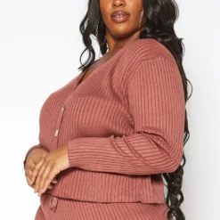 Asoph Plus Size Ribbed Knit Button Front Sweater