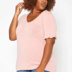Asoph Plus Size Ruffle Trim V Neck Tee Shirt