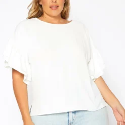 Asoph Plus Size Ruffle Trim Short Sleeve Top