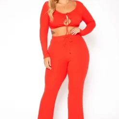 Asoph Plus Size Ribbed Knit Tie Front Crop Top & Legging Set