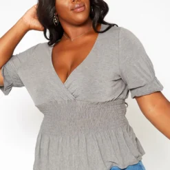 Asoph Plus Size Smocked Scrunch Detail Cam Top
