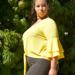 Asoph Plus Size Tie Front Crop Top & Flare Pants Set