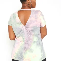 Asoph Plus Size Tie Dye Open Back Tee Shirt