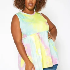 Asoph Plus Size Tie Dye Sleeveless Flare Blouse