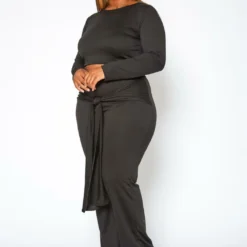 Asoph Plus Size Crop Sweater & Belted Flare Pants Set