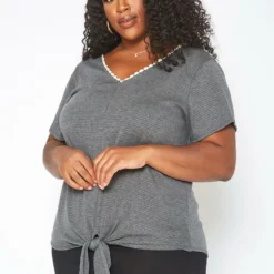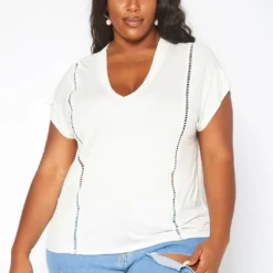 Asoph Plus Size Crochet Hem V Neck Shirt