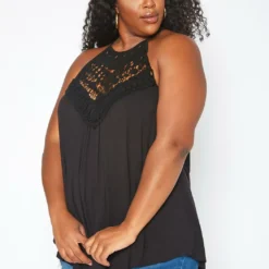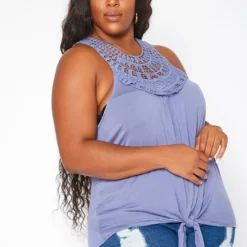 Asoph Plus Size Crochet Hem Tassel Front Tank Top