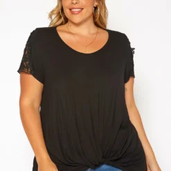 Asoph Plus Size Crochet Hem Short Sleeve Shirt