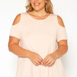 Asoph Plus Size Cross Lace Back Cold Shoulder Top