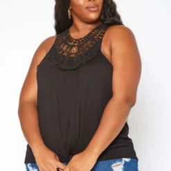 Asoph Plus Size Crochet Lace Detailed Tank Blouse