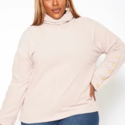 Plus Size V Neck Pocket Hem Long Sleeve Blouse