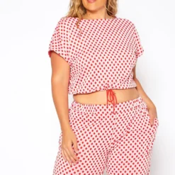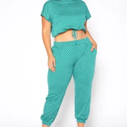 Asoph Plus Size Polka Dot Print Crop Top & Joggers Set